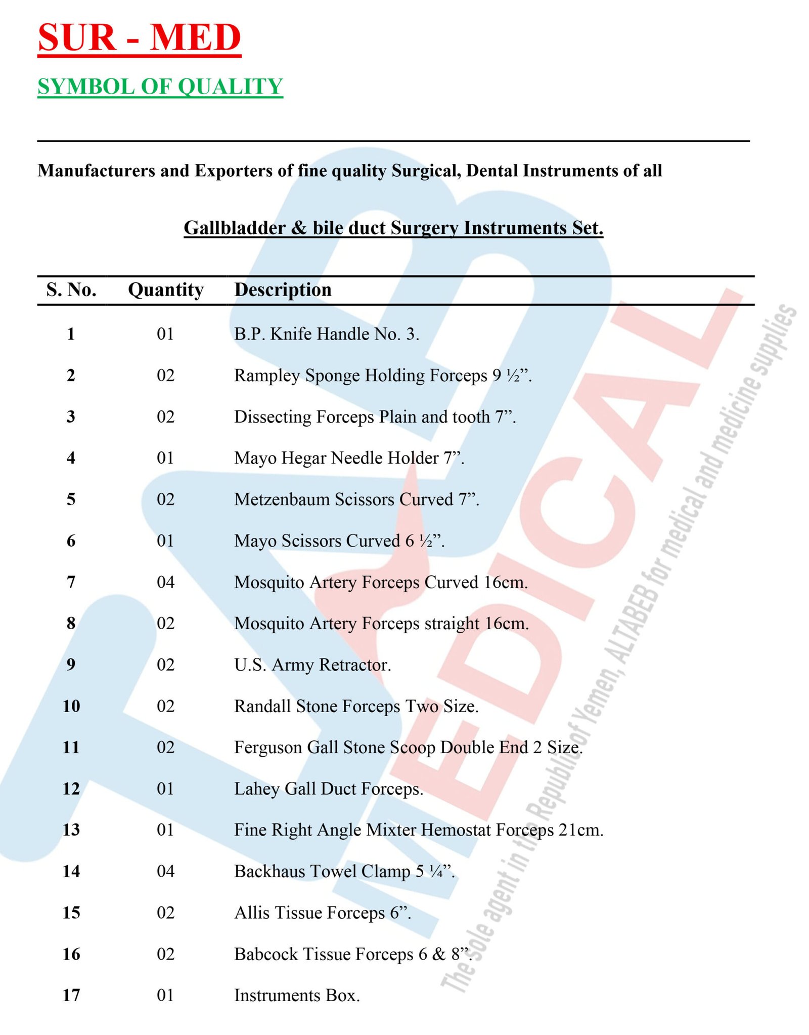 Gallbladder & bile duct Surgery Instruments Set. (30 PCS).