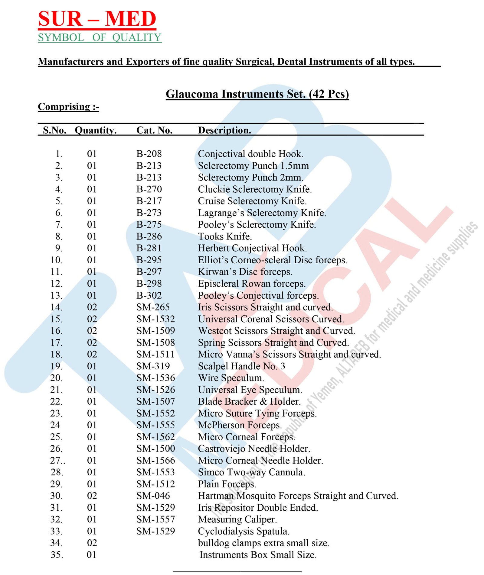 Glaucoma Instruments Set. (42 Pcs)