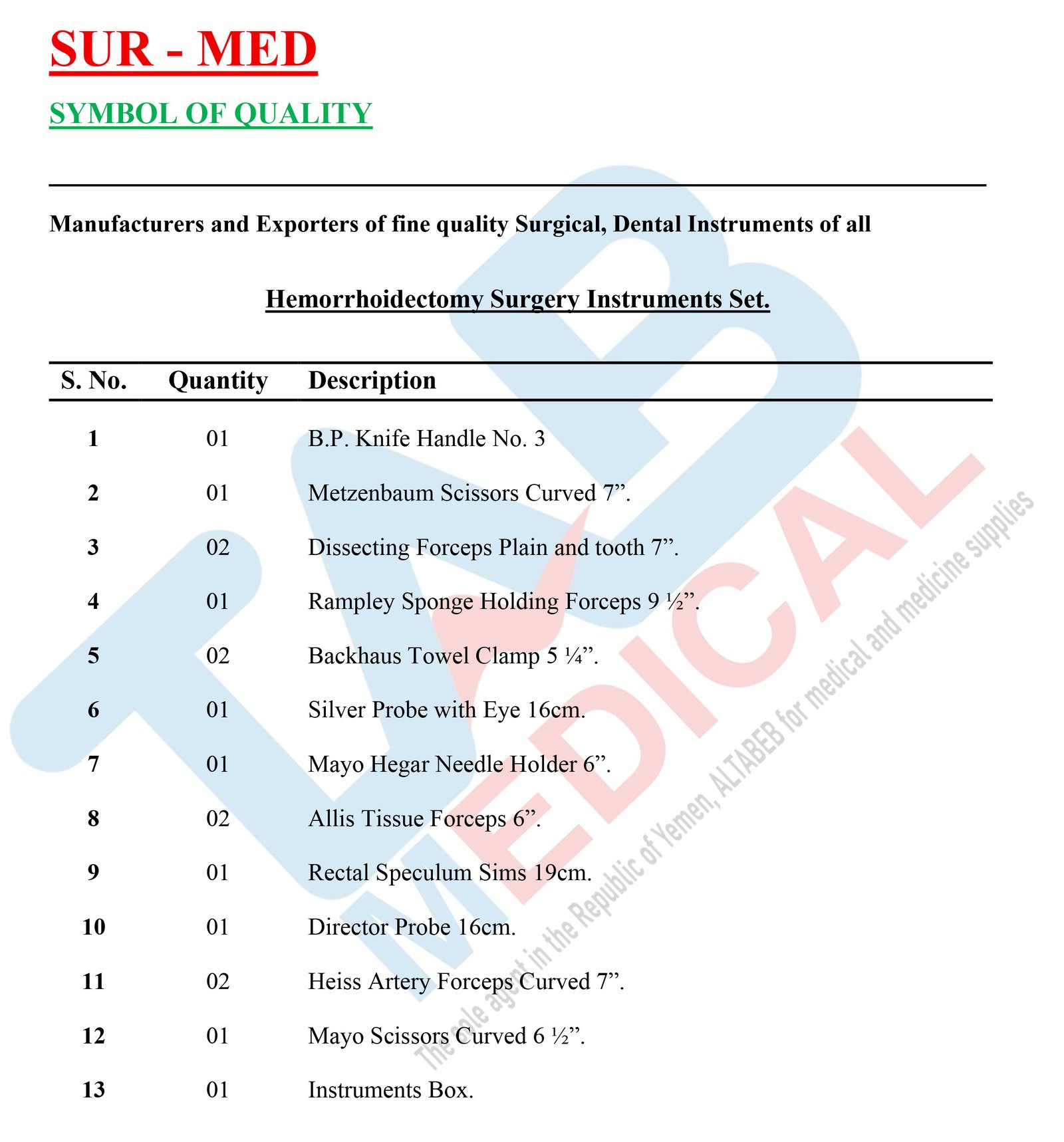 Hemorredectomy Surgery Instruments Set. (17 PCS).