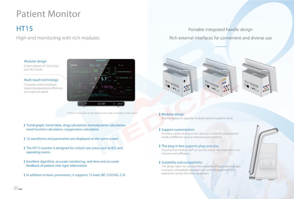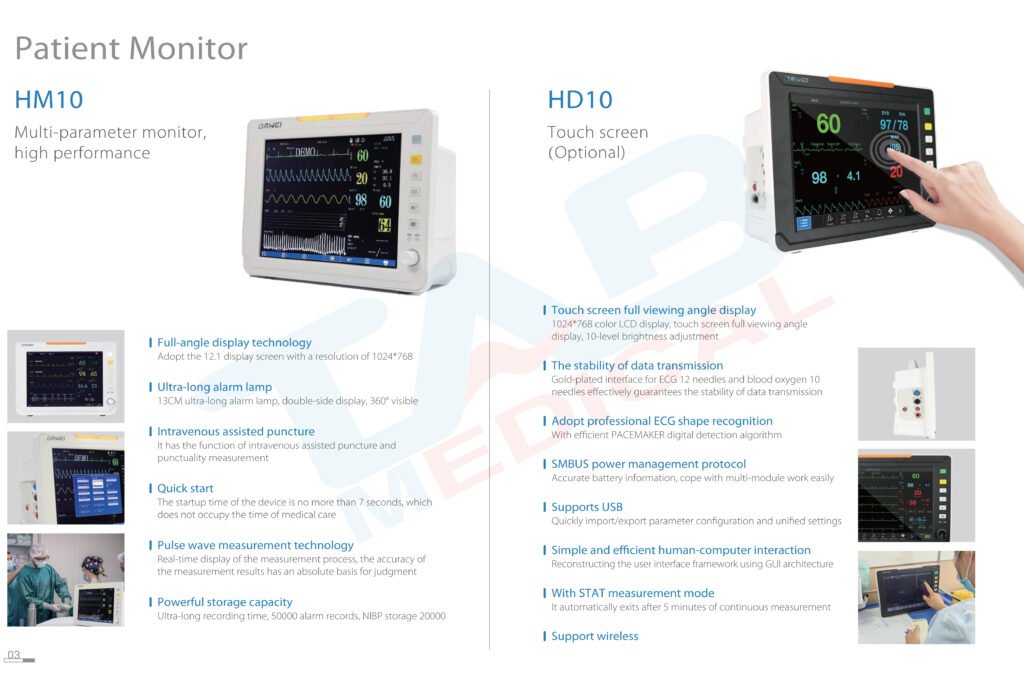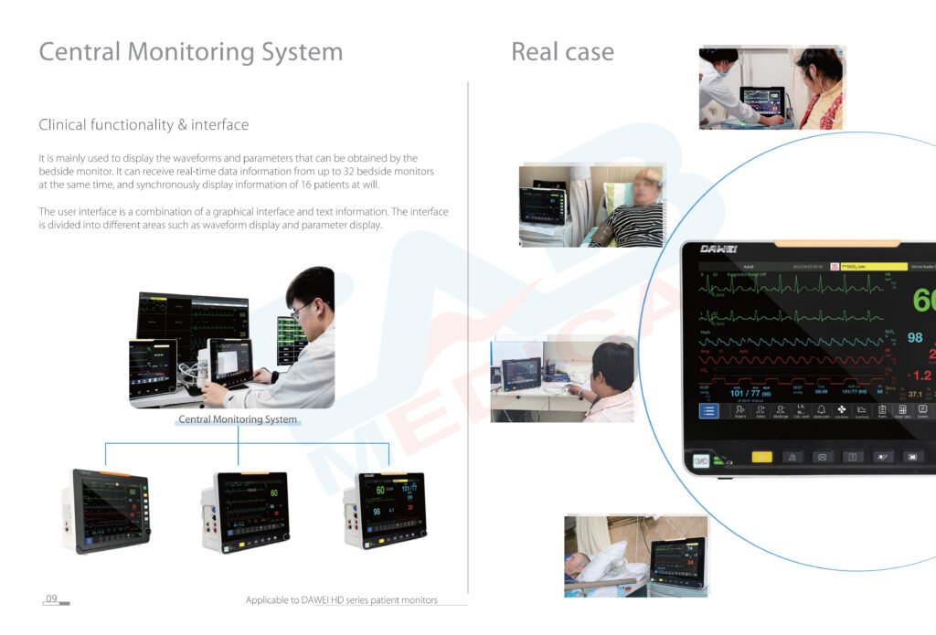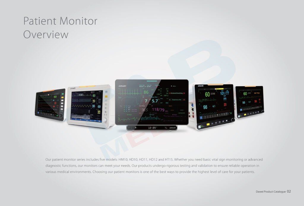 Dawei medical patient monitoring device will be a great assistant for the doctors and nurses in recording the life information of the patient. Patient monitors are vital devices used in healthcare settings to continuously observe and display a patient’s vital signs, providing real-time, continuous monitoring of vital signs such as heart rate, blood pressure, oxygen saturation, and respiratory rate, allowing healthcare providers to quickly detect any changes in a patient’s condition. Patient monitors play a critical role in patient safety and care by continuously monitoring vital signs and facilitating early detection of changes in a patient’s condition, leading to better outcomes and improved quality of care.