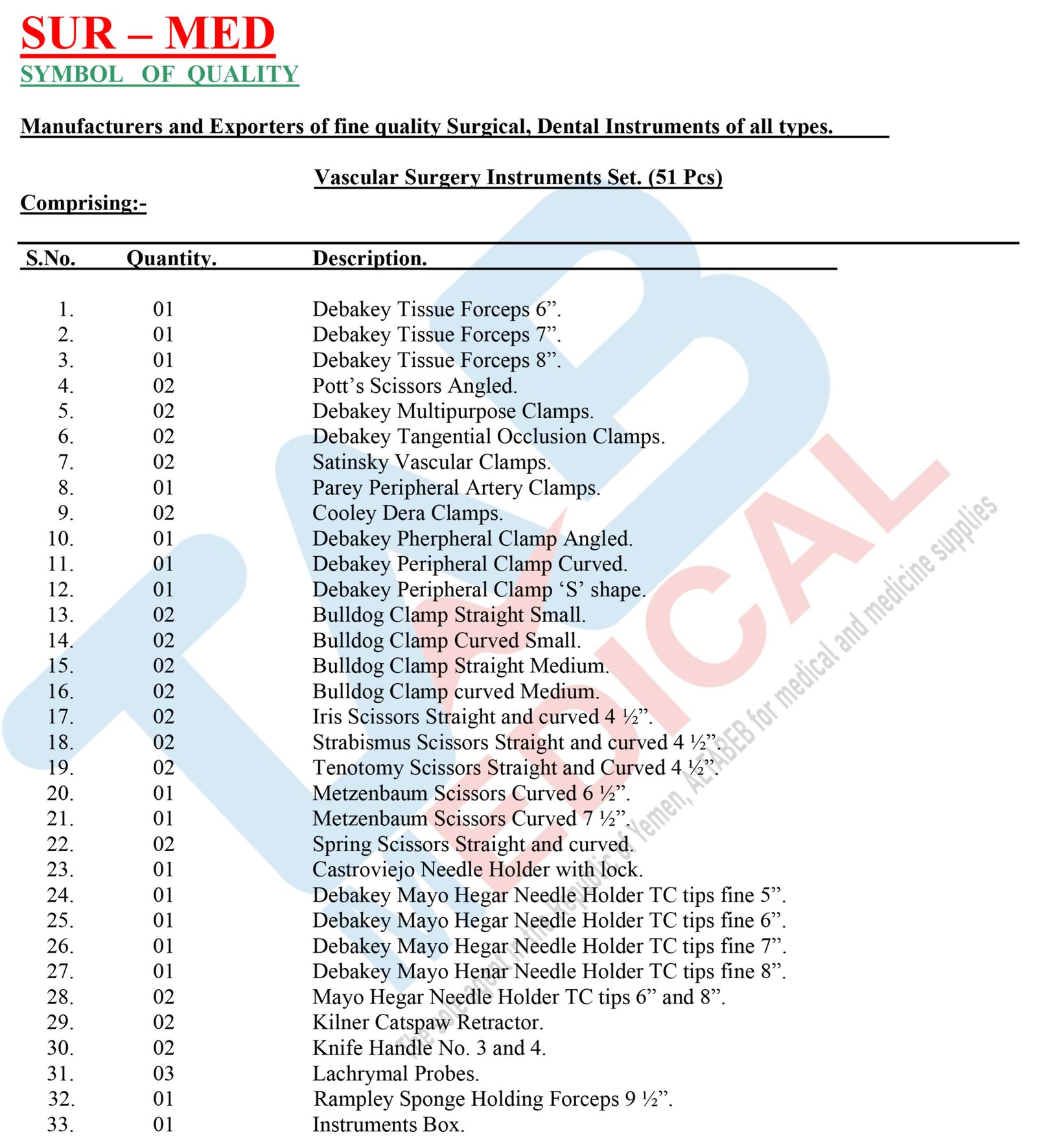 Vascular Surgery Instruments Set. (51 Pcs).